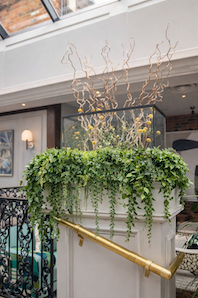 Decorative greenery along walkways and railings