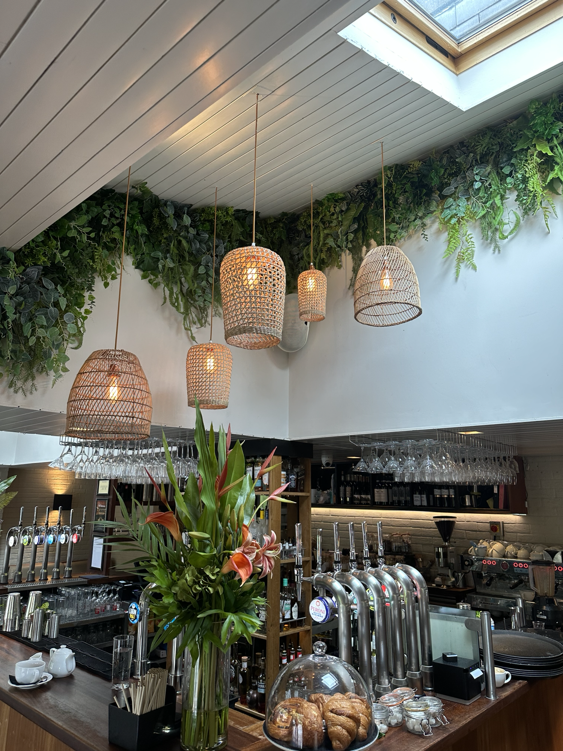 For spaces like the one above—featuring warm lighting, natural materials, and a relaxed yet refined atmosphere—artificial garlands provide: